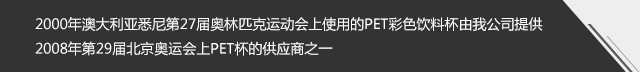 1994年公司從美國、瑞士引進當時最先進的生產PET產品流水線,正式開始專業(yè)生產PET系列產品。通過20多年的不斷探索和發(fā)展,市場遍布五大洲六十多個國家和地區(qū),與世界很多知名企業(yè)和品牌建立了友好合作,,如星巴克、DQ、迪士尼、農夫山泉、蒙牛、百威啤酒等。公司現(xiàn)有若干條流水線,幾十臺各類生產機組,年生產能力可達12億套以上,形成了完整的集設計、制造、生產、銷售與服務為一體的專業(yè)運行體系。